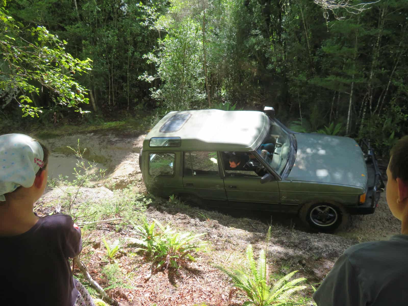 This is a side track that apparently must be attempted each time. James only went downhill, but Simon and his friend both had to go up it, as well. This is Simon going up in the Land Rover.