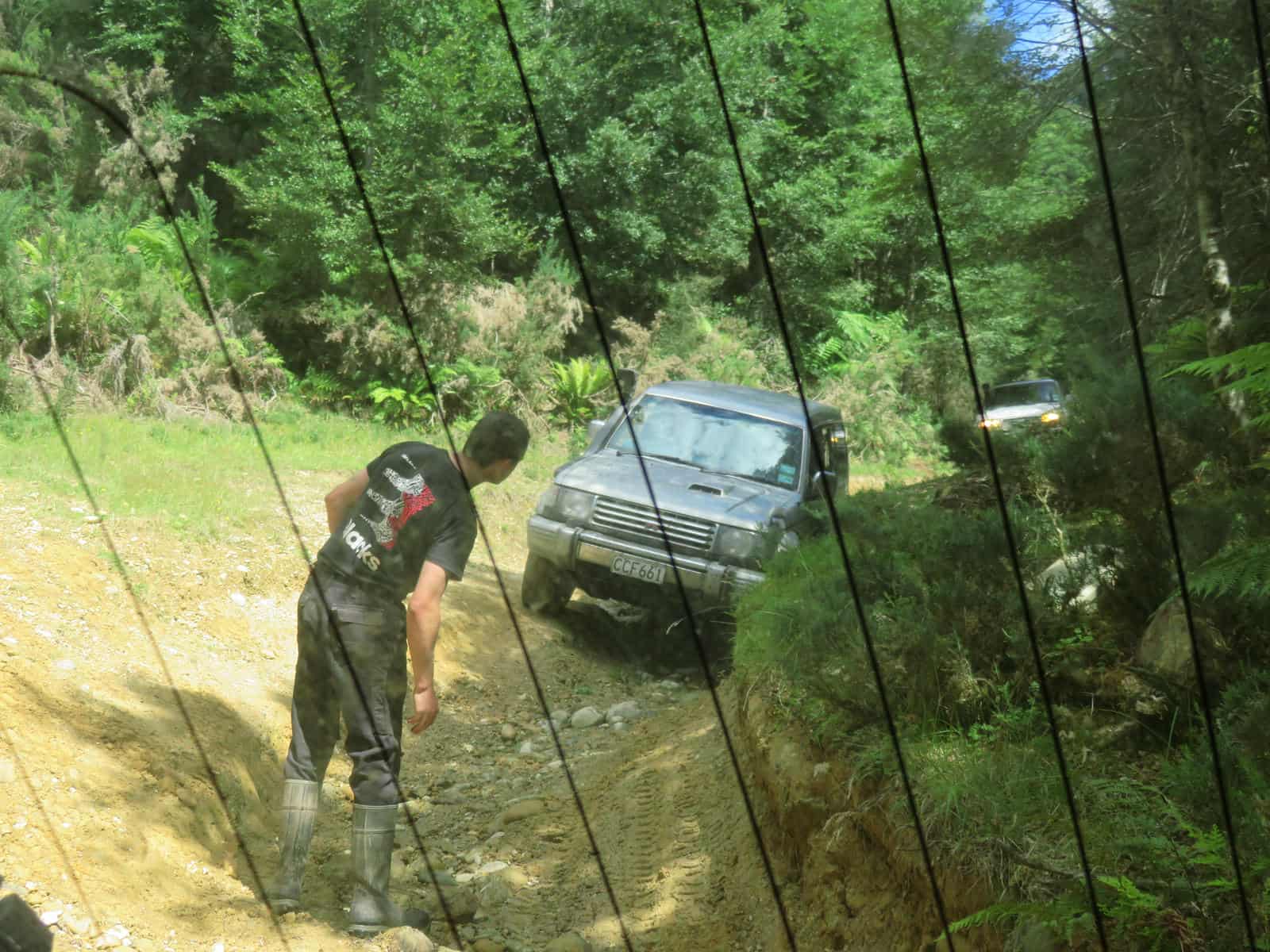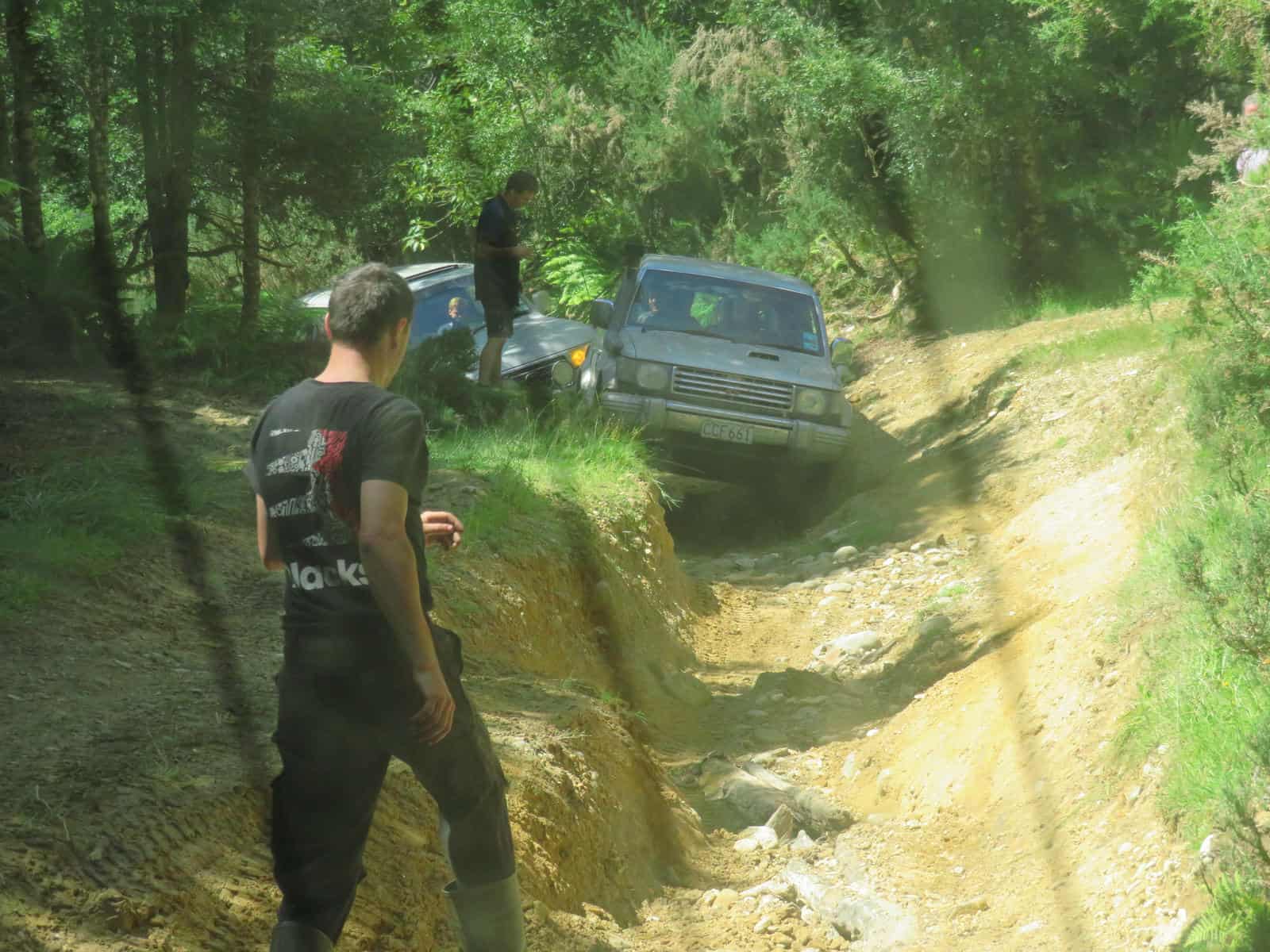 Going downhill on another side track. The Safari went first, then the Land Rover, and then the Pajero. Simon stood in the track to direct James in driving the Pajero down. I was in that one. These gullies were terrifying enough going down….
