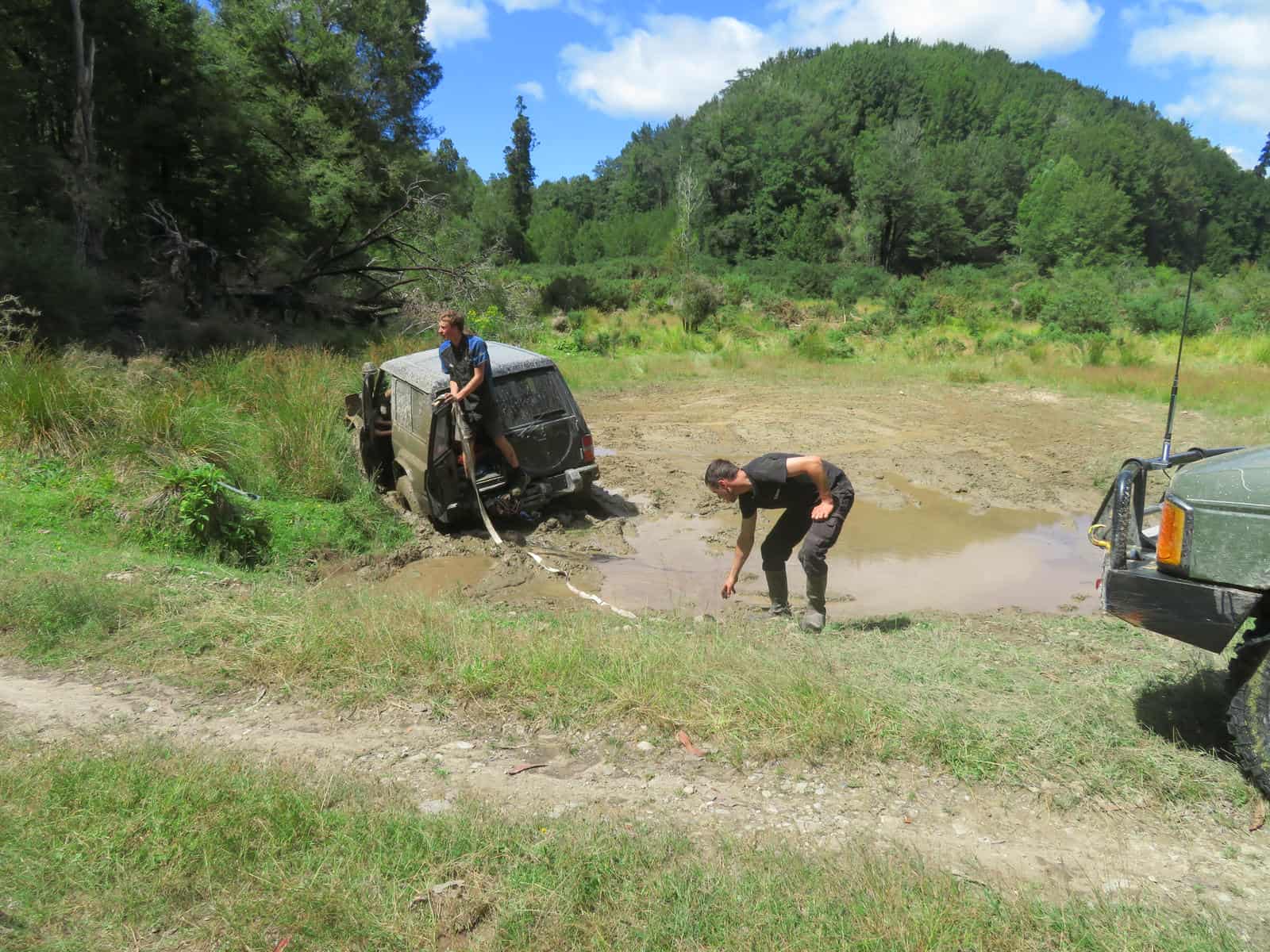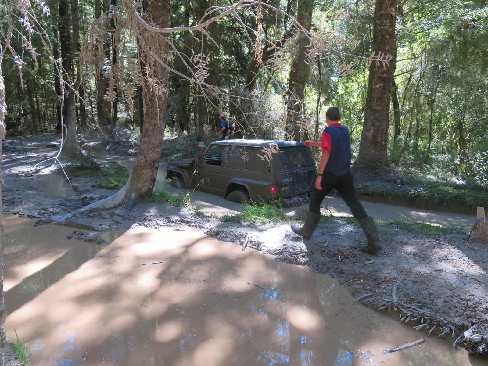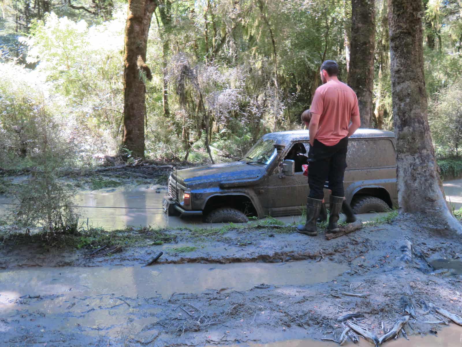 When we reached this mudhole, we found the Safari stuck in the mud. Simon pulled him out, and then he went right back in…and got out on his own that time.