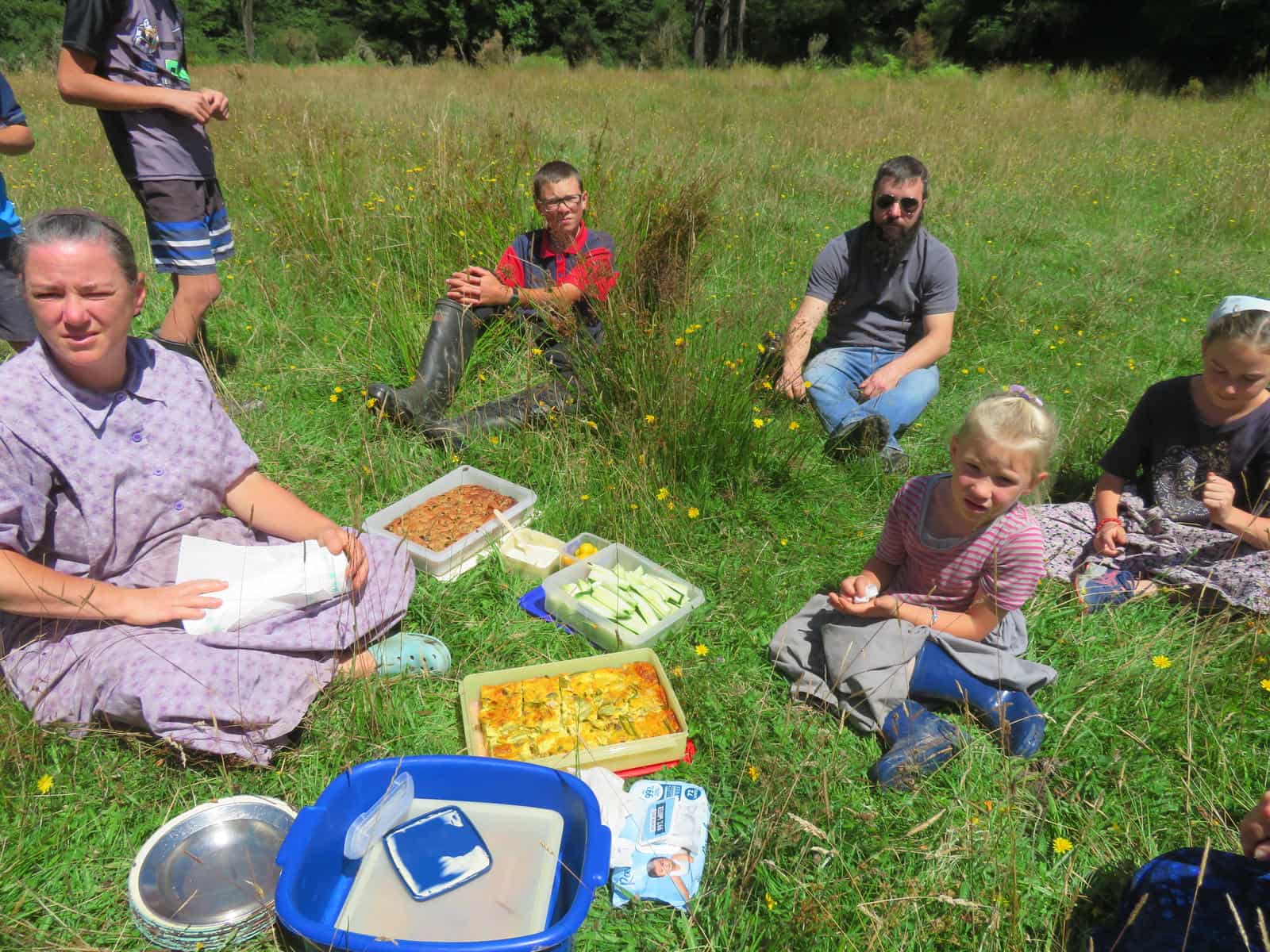 After awhile we came out into an open meadow, and climbed to a plateau above it for a lunch break.