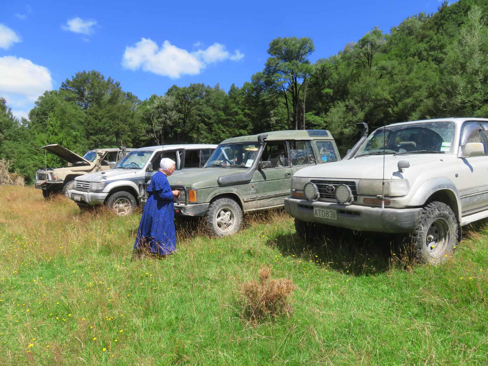 I do not enjoy four wheel driving, but I decided to go along this time, since my entire family, plus Mom and my brother, were going. We took two vehicles: James’s Mitsubishi Pajero, and the Land Rover that Simon had just finished fixing. Some friends went along as well, with their two vehicles–a Land Cruiser and the Nissan Safari that Simon had restored and then sold to his friend. It was quite an adventure! I’ll let the pictures tell the story, for the most part. This first picture shows the house where the people live who maintain the track. They collect a small fee from each vehicle that goes on the track. The waterwheel generates their electricity.