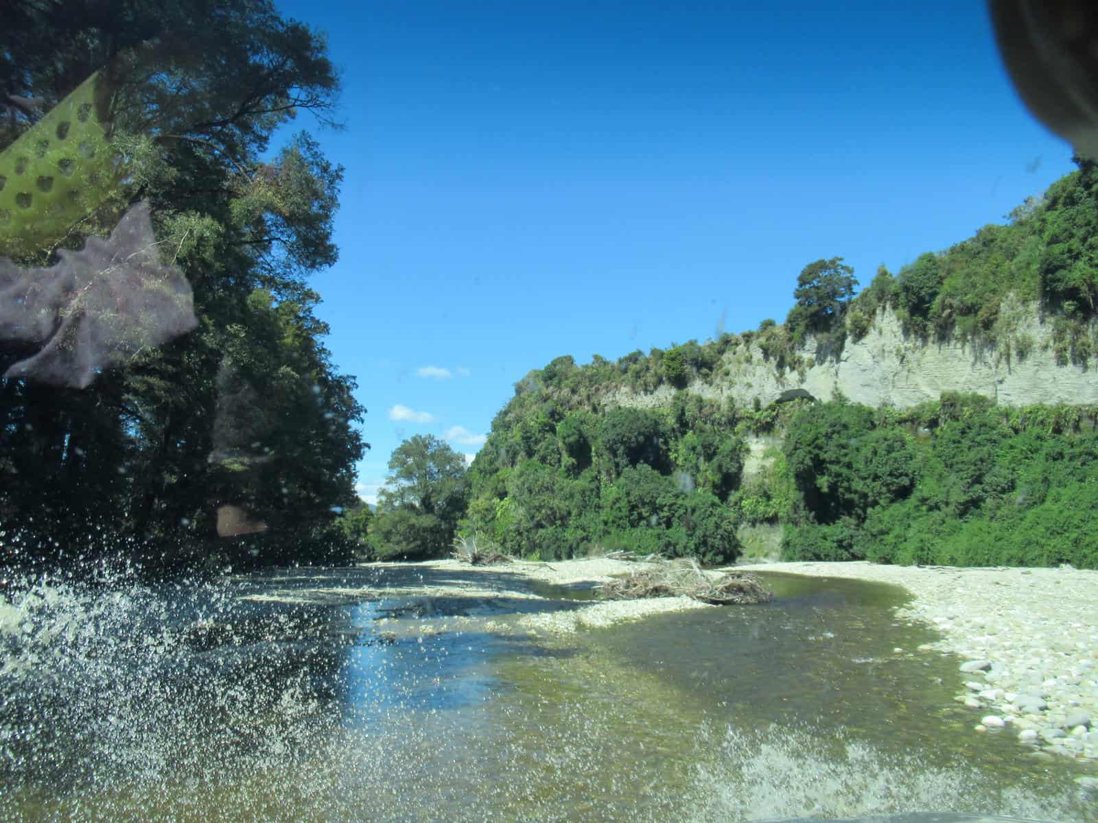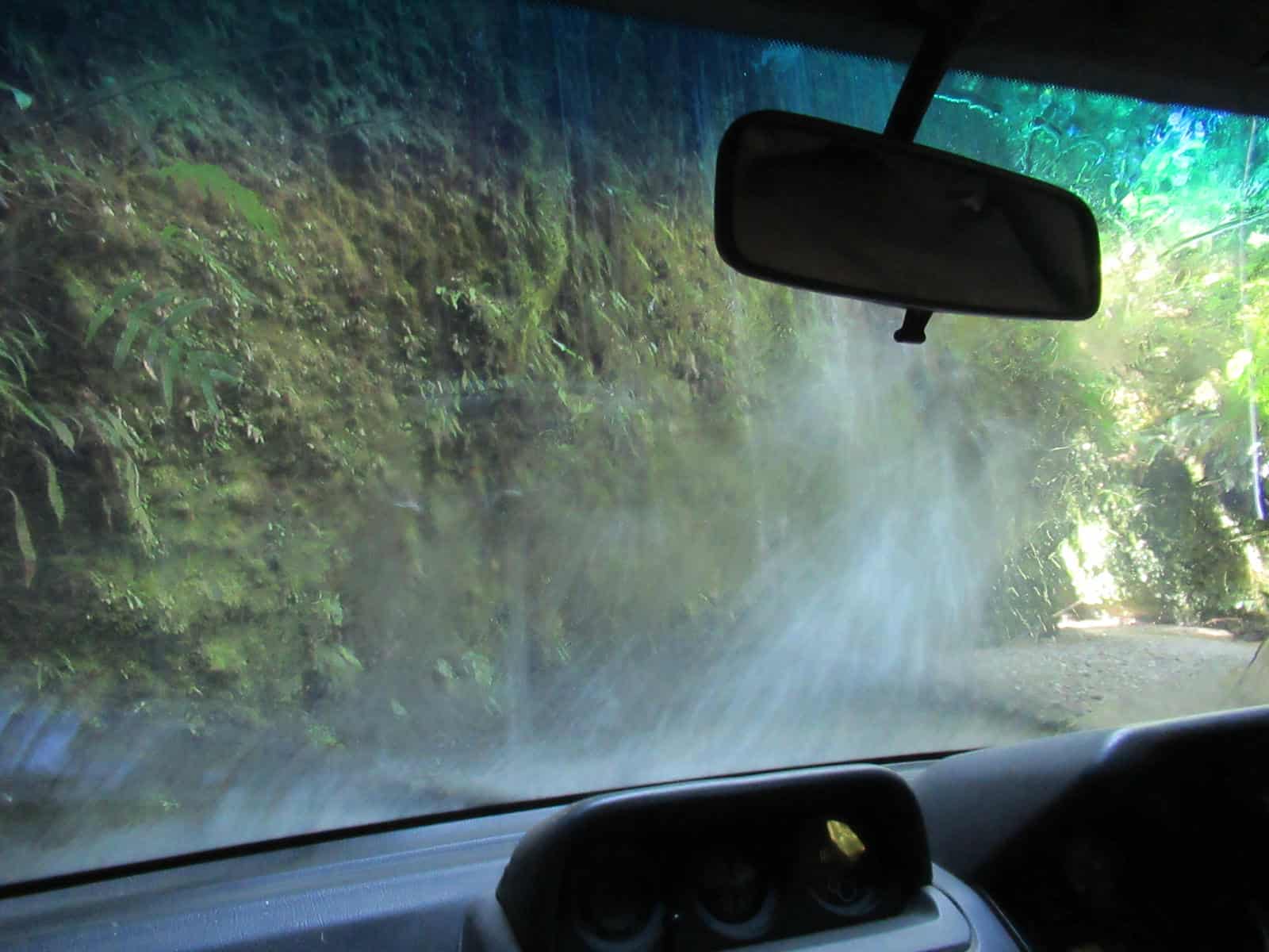 A waterfall provided a car wash. There was so much mud on the windscreen by that time that a clean was quite welcome!