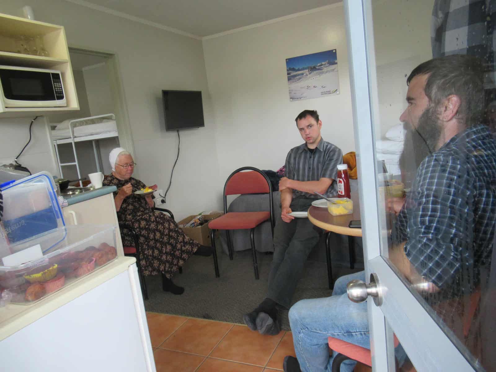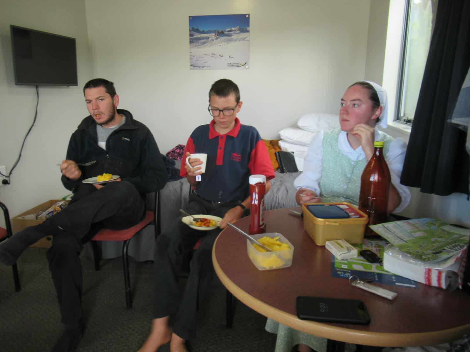They had rented a small cabin for the night. It had a kitchen, so meals were eaten there, and five people slept in it. The others pitched a tent.