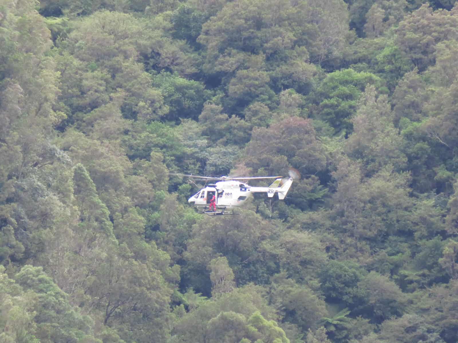 A rescue was in progress; someone had slipped and gotten hurt in the river bed.