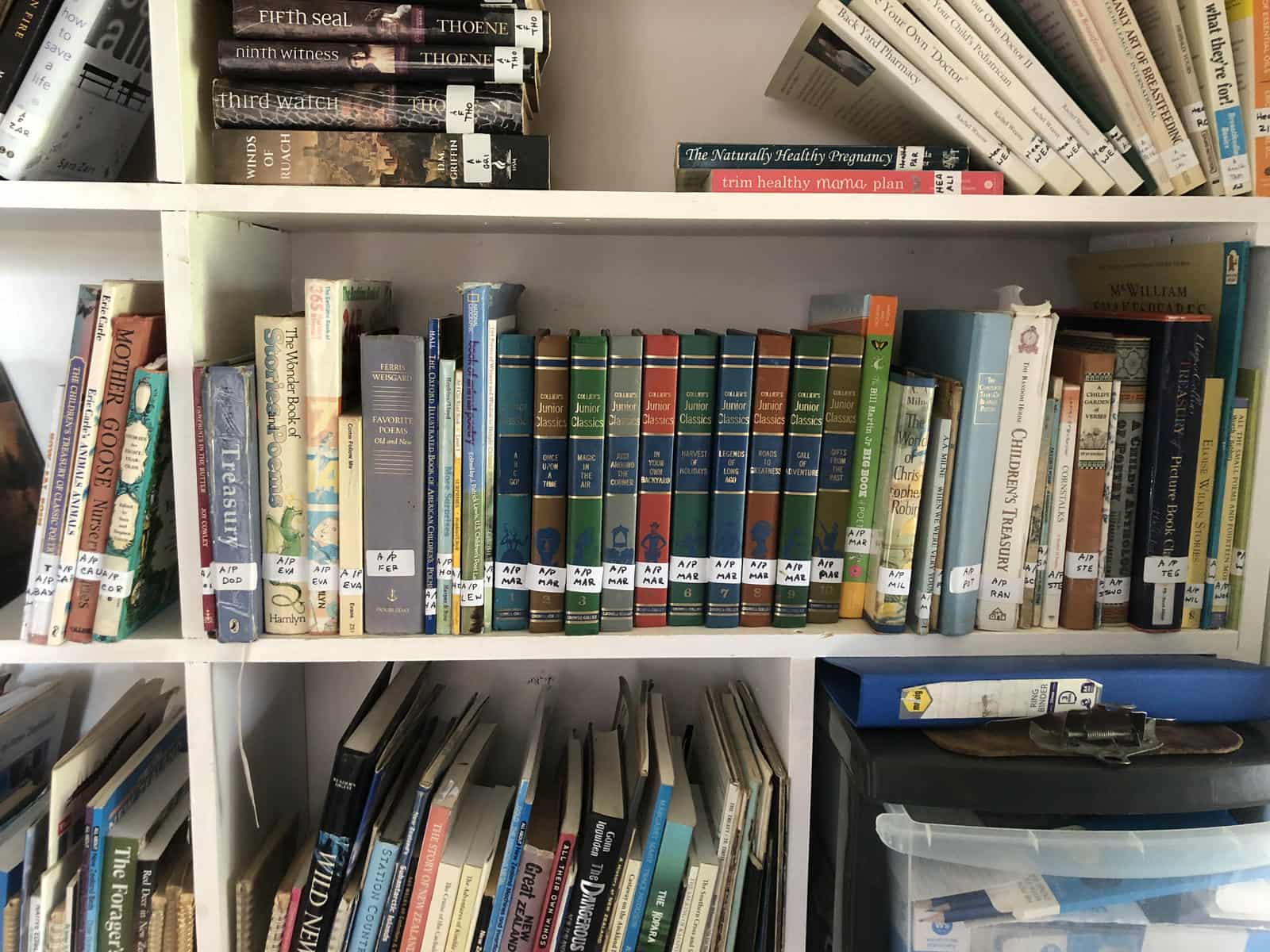 When we received the Junior Classics set, we had to figure out where to house them. We had already combined the poetry books and anthologies into one Poetry/Anthology shelf, and decided to swap them with the cookbooks so that they will be more visible. Look at how many books are on that shelf!