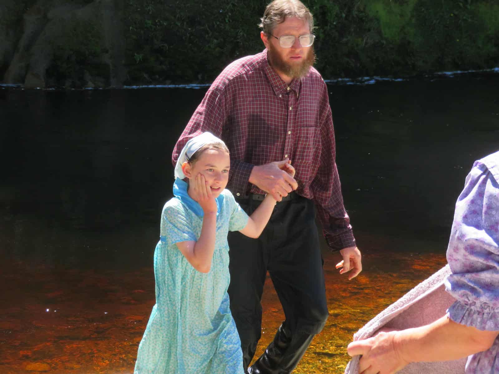We had the joy yesterday of seeing two of our children baptized! Both Mr. Imagination and Little Miss made that decision on the same day not long ago. Gayle led the service; we sang four songs, he gave a message about baptism, then the children each shared a brief testimony, and he baptized them. After they came out of the water, Gayle invited everyone to gather around and pray for them. Afterward, a person who was coming down to swim came up to us and offered to send us some pictures she took. That gave us a brief opportunity to talk to her about the Lord!
