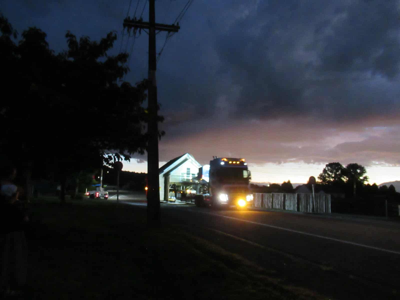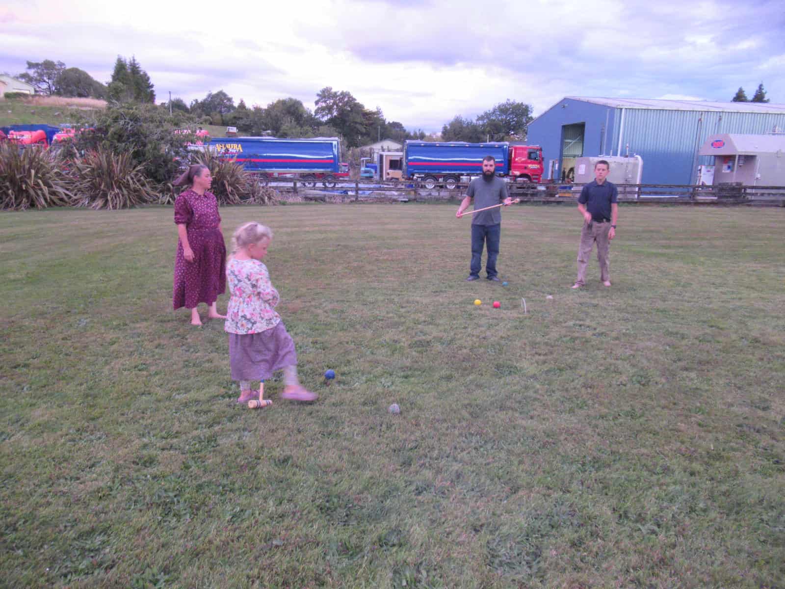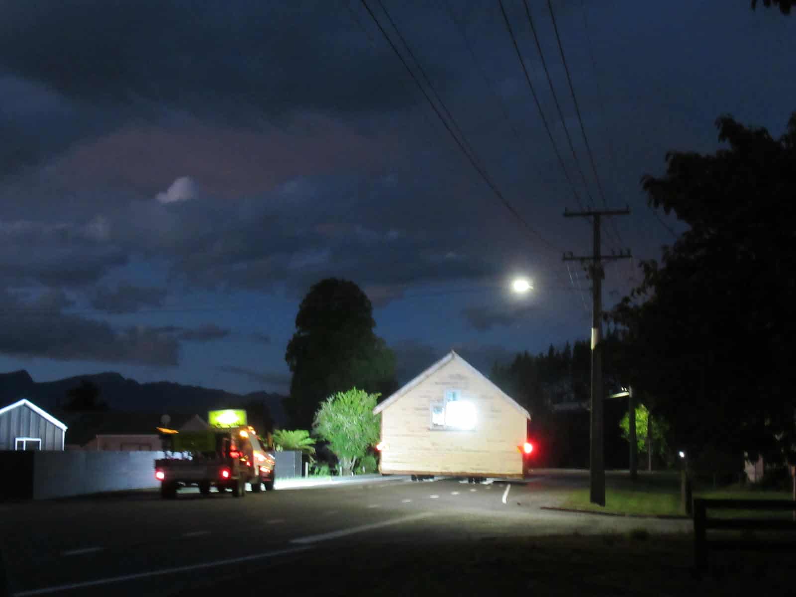 I believe it was that same evening that someone called us to say that the old church in Ngahere was on the move, and would be going past our house after awhile! The building had been bought by someone from Arahura, near Hokitika, and after about three years it was finally being moved there. We wanted to watch it go past, so we went to the park across the road and played croquet while we waited. Such a fun evening! The first person had just gotten around the course and won when the church came into sight.